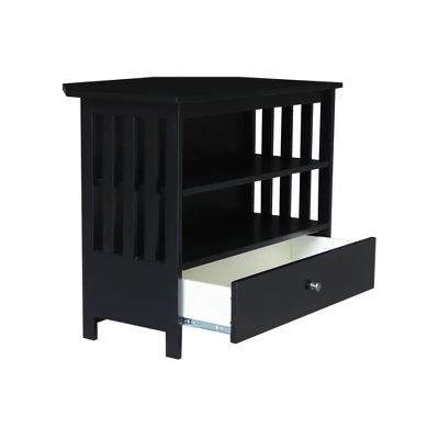 - Includes one drawer and 2 shelves (1 fixed and 1 adjustable)