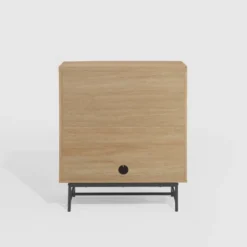 Modern Metal Bar Round Side Table Coastal Oak/Black Saracina Home