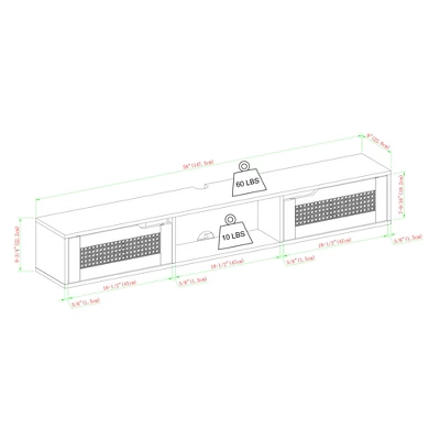 Modern Boho Floating TV Stand For TVs Up To 65″ With Rattan Doors – Saracina Home