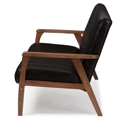 The Nikko is a stunning 3-seater sofa perfect for modern lounges and receptions. It incorporates the elements of simplicity, style and comfort, wrapping it all into a new and clean silhouette. Made from solid rubberwood, it is purposefully designed for compact everyday use. Upholstered in faux leather and padded with foam, the Nikko is ideal for the conservatory, kitchen or your living room. Angular wood frame gives a nod to mid-century style, combining Scandinavian design with lux colonial wood in attractive finishing to complement the upholstery for a moody palette steeped in classic masculinity. Made in Malaysia, the Nikko requires assembly.