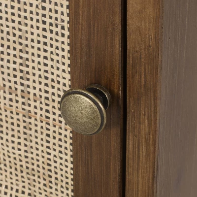 Storage space is a must for organizing the clutter in your home. Our end table is the ideal companion in any interior space with its sleek contemporary look, convenient storage space, and industrial sled legs. With a rich wood-like frame and gorgeous rattan accents, this side table brings a simple yet sophisticated touch to your furniture. Whether you are using this in your living room or bedroom, this eye-catching accessory will support your lamp accessories or a potted plant in style.
