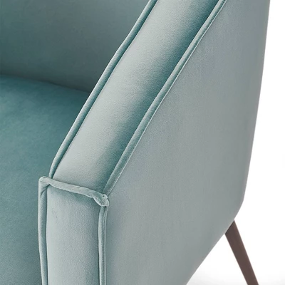 - Flared arms and slim tapered legs inspired by mid century modern furniture