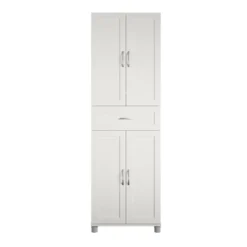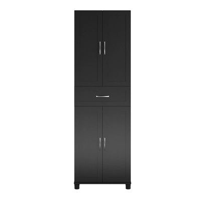 Get extra storage where you need it most with the RealRooms Basin Framed Storage Cabinet with Drawer. The woodgrain finish on the laminated particleboard gives the Cabinet a modern look at an affordable price. The Cabinet features 2 upper and lower doors and a drawer for concealed storage wherever you need. Behind each of the doors are 1 adjustable and 1 fixed shelf for plenty of space to store both large and small items. Store away and organize everything from kitchen pantry items, cleaning supplies, office supplies, and board games. The drawer is a perfect spot to store away smaller items like batteries, writing utensils, or stationary and features metal slides for years of use. The adjustable feet make keeping your Cabinet level on uneven floors simple. A wall anchor kit is included to prevent tipping injuries and keep your family safe. Use this piece as a stand-alone item or combine it with additional RealRooms Basin Framed storage items to create the perfect storage solution for your home. The Storage Cabinet ships flat to your door and requires assembly upon opening. Two adults are recommended to assemble. Once assembled, the Storage Cabinet measures to be 75.25”H x 23.46”W x 15.4”D.