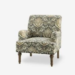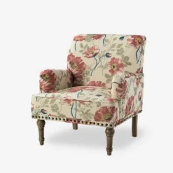 Looking to add an armchair to your living room or bedroom? This one is in keeping with your glam sensibilities, adding an eye-catching point to your space. Turned legs support the solid and manufactured wood frame, foam-filled back wrapped in polyester blend fabric with a floral design for sink-in comfort. Some nailhead trims line the chair shape and introduce an unexpected touch for a hint of traditional charm. Place it near a window and you will feel as if you are sitting outside in a garden with the breeze caressing your hair. With its generous yet cozy profile, this armchair brings leisurely styles at great value.Item Size: 28.7″Wx30″Dx34.8″H, Seat Size: 19.8″Wx21″Dx18.5″H