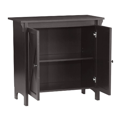 Create the perfect spot for stashing everything from office supplies to seasonal clothing with this modern farmhouse two-door storage cabinet. The ideal size for a multi-functional space, the cabinet is built with farmhouse character evident in its small details and barn-inspired X-cross accents on two doors. A wide top provides plenty display potential perfect for framed photos, a table lamp, or even a beautiful sculptural piece. This cabinet is offered in espresso and cherry wood finishes, each setting a stylish tone for your space.Saint Birch’s mission is to help everyone create a better home, where one can find affordable style and comfort. We strive to ensure every customer’s experience with our products is warm, worry-free, and comfortable.