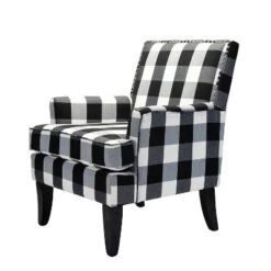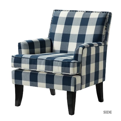Classic style and contemporary design combine in this inviting armchair. Founded on a solid birch wood frame, this chair strikes a club chair silhouette with a slightly slanted backrest, clean track arms, and tapered block feet. Its classic design along with its gorgeous pattern and gleaming nailhead trim makes this chair a must-have in any home. It will be suitable for those urban dwellers with limited space.