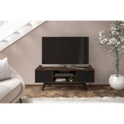 The Shard 2 Door TV Stand stands out in your living room. Its low profile, sleek design combines looks with function. It can hold up to a 55-inch TV and has ample space, including a center area, for all your media storage needs. It will look good and help entertain all at the same time.