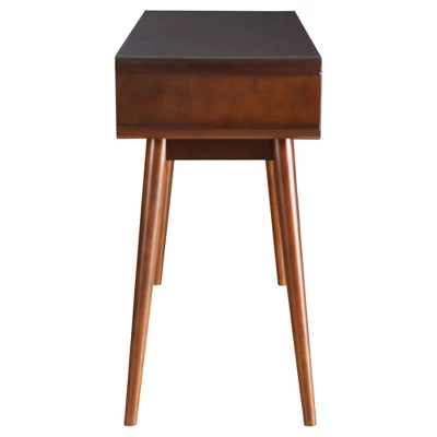 - Mid-century modern sofa table offers stunning contrast
