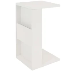 Add a unique and versatile table to the living room, family room, or den with this 2-in-1 table. This table can be used as a lap table or an under-the-couch end table, making it a versatile piece for any indoor space. Place it down on both legs to create a short coffee table, or stand it up on one leg as a small C-side table. Put it in the bedroom, office, or living room as a small couch side table. When used as a short coffee table, 2 side indents create a convenient place to set remotes, coasters, or decorations. When flipped up as a side table, the indents become a shelf and a cubby that are great for resting remotes, storing magazines, and other everyday necessities. The table is made from medium-density particleboard and is designed to be used in indoor spaces only. This accent table for small spaces features a neutral finish that is sure to complement any indoor decor style.