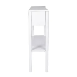 This end table measures over 30″ tall, making it an ideal fit next to your bed or front door. It’s made from solid bayur wood in a crisp white finish and features an open silhouette with four tapered legs. The bottom shelf provides a spot to keep storage baskets or decorative objects, while the single drawer offers essential out-of-sight storage. The woven wicker drawer front gives this side table a hint of breezy, boho appeal. Hand-curated by Kelly Clarkson.
