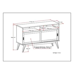 Your TV deserves a stylish and sturdy stand. The Tierney Mid Century modern Tall TV Media Stand is a well-designed piece of furniture reminiscent of the style from the 1950s and 60s . The top features two shelves with cable management cutouts for your electronics. Two sliding doors open to reveal a roomy storage space for your DVD or game collection. This 33” high stand can accommodate a TV up to 60”.