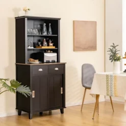 - Sliding doors keep daily items organized and out of sight