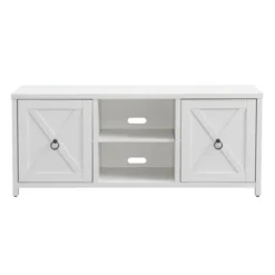 A must-have for living areas and entertainment spaces, this TV stand sets the stage for the big game, a movie marathon, or that season finale everyone’s been talking about. Crafted from steel it strikes a clean-lined silhouette and boasts a solid blackened bronze finish for a look that blends with nearly any color palette.Features : Hand crafted blackened bronze finish is applied to the steel frame.Clean with a soft, dry cloth; no harsh chemicals or abrasive cleaning materials.Features easy assembly.Accommodates most flat-screen TVs up to 55 inches. Made from premium metal and tempered glass this media console can support up to 75 LBS.Premium materials have been used in the making of this productSpecifications : Product Weight : 40.7 lbsFrame Material : Metal