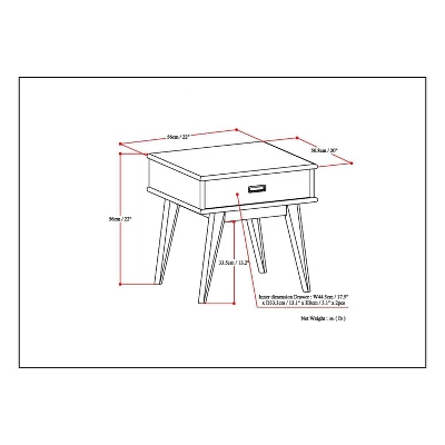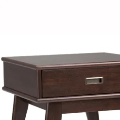 Tierney Solid Hardwood 22 inch Wide Rectangle Mid Century Modern End Table. Mid Century Modern design with tapered legs. Includes a spacious drawer. Handcrafted using the finest quality solid rubberwood. Can also be used in the bedroom as side tables. Simple assembly; just attach legs. Efforts are made to reproduce accurate colors, variations in color may occur due to computer monitor and photography. The product is warranted to be free from defects in material and workmanship for a period of (1) year from the date of purchase to the original owner.