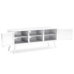 Your TV deserves a stylish and sturdy stand. The Tierney Mid Century modern Low TV Media Stand is a well-designed piece of furniture. The center features two shelves with cable management cutouts for your electronics. Two side cabinets each have one adjustable shelf for your DVD or game collection. This 26″ high stand can accommodate a TV up to 65″. Efforts are made to reproduce accurate colors, variations in color may occur due to computer monitor and photography