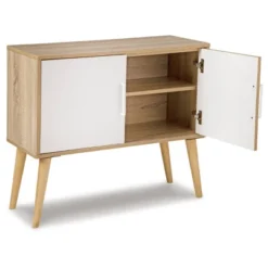 Make watching TV a joy with the Todoe TV stand. Top surface accommodates up to 70-inch TVs. Its rustic-industrial style is sure to complement any contemporary decor through gray coloration, squared edges, zinc-tone corner bracket accents and nailhead detailing. Several vented open cubbies offer impressive shelf space, convenient for keeping all of your electronic gear within reach. Handy cutouts keep cords out of sight. Large center opening accommodates shelving insert (included) or the W100-22 large fireplace unit (sold separately). Signature Design by Ashley is a registered trademark of Ashley Furniture Industries, Inc.