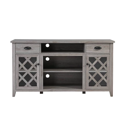 - Gray TV stand measures 60×15.5x33H
