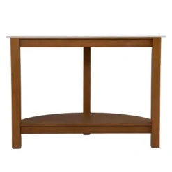 Add the finishing touch to your living space with the Aiden Lane Vebell Demilune Console Table. A half-moon design fits perfectly behind your sofa or along an entryway wall, while the spacious faux marble tabletop displays framed photos or holds your keys and wallet. Place this two-tone sofa table in your open concept living space to create storage where you need it most, or tuck into your hallway to put your favorite décor pieces on display. Stylish storage comes home with this faux marble console table.