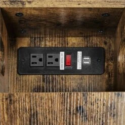 - Are you looking for a practical end table without sacrificing style? This wooden end table with charging station will give you a distinctive rustic feel and technical elements. The hidden hinges allow the tabletop to flip open, revealing 2 built-in power outlets and 2 USBs for charging multiple devices, such as cellphones, tablets, table lamps and more. This end table is made of high-quality P2 MDF and iron material to serve you for a long time. This chair side table features 1 practical drawer, 2 bottom storage shelves and an extra storage bag, which offers ample storage space to keep items orderly and organized. Thanks to its narrow design, it can be positioned in various settings, including your hallway, guest room, home office and living room.