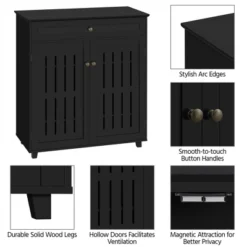 - ăLouvered Door Designă To extend shoes’ service life , weâd better store our shoes in a dry place with good air circulation. Out of this consideration, this shoe cabinet applies louvered doors with inset magnetic door stops for better ventilation and privacy