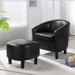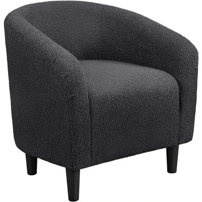 - The contemporary with traditional curved design merge for an elegant look, this boucle club chair is an inviting addition to any seating ensemble. Constructed of a manufactured wood frame, soft-to-touch boucle covering and medium-firm foam seat, this barrel chair stands out from others for its quality and comfort. The ability to hold up to 300lb provides a strong and durable seat for all ages.