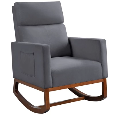 - The mix of fabric upholstery and solid wood base adds a touch of elegance and chic to your space. Crafted from breathable polyester, high-density foam and sturdy rubber wood legs, this accent chair is designed to provide you with a steady and comfortable sitting experience. The combination of an enlarged seat and a high backrest makes this piece fit for most individuals.