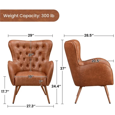 - ăA Sophisticated & Supportive Seating Optionă Rested on four robust metal legs, this classy accent chair embraces a CARB-compliant plywood frame, sumptuous faux leather upholstery, ultra-durable pocket coils and resilient foam fill, offering a reliable, plush sitting experience. It can support up to 300 lb.
