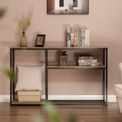 Yuna Natural Wood And Metal 2 Door TV Stand For TVs Up To 40″ Brown/Black – Baxton Studio